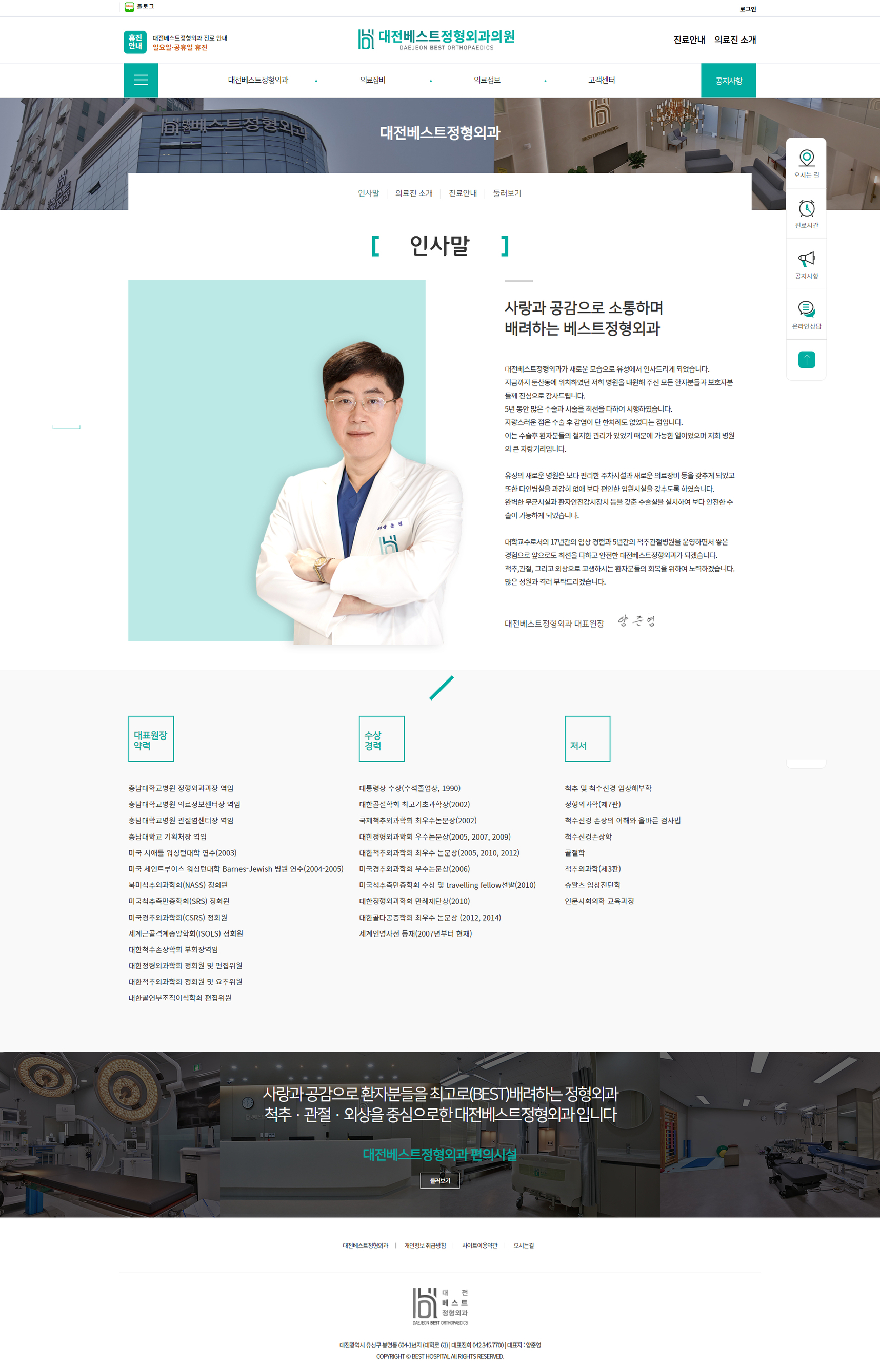 베스트정형외과는 사랑과 공감으로 화자분들을 최고로(BEST)배려하는 정형외과이며 척추·관절·외상 중심으로한 정형외과에 맞게 환자분들을 최선으로 생각하는 디자인 및 구축을 하였습니다.